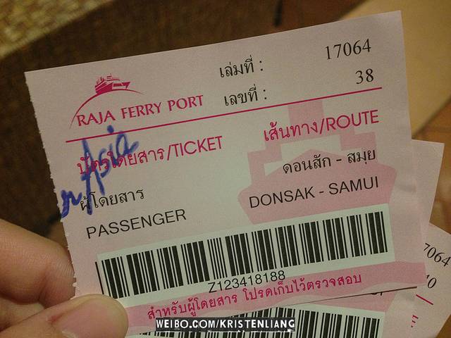 1. 曼谷 >>>>> 洛神府 NST(機場)>>>>> Donsak碼頭 >>>>> 蘇梅島(Lipa Noi碼頭)