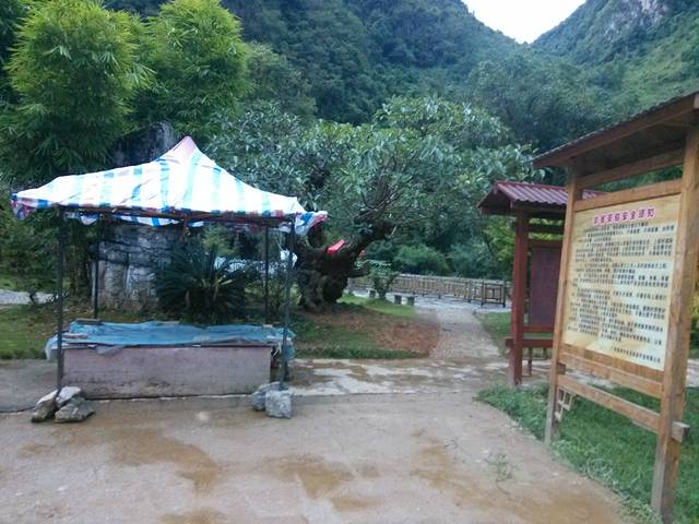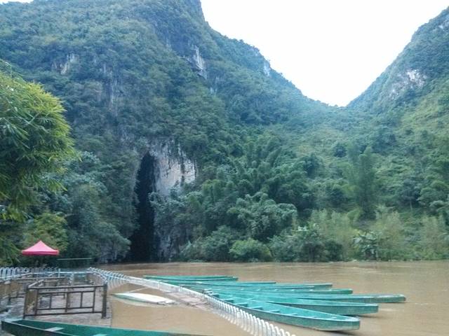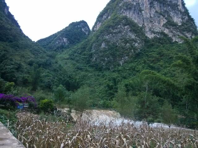 要进入坝美得经过一段1公里多的马路。马夫一直说服我回去,说坝美景区进不了,水已经涨到1米多高了,即使去到洞口,也没有船夫敢撑船进入洞口。但是真心想去看看,不然死不瞑目,于是跟马夫说去门口拍拍照。住一晚隔天再走,马夫才肯让我上车。马夫说,昨天也有一个人要进来,但是也是进不了,只是在门口看看。