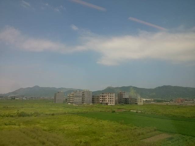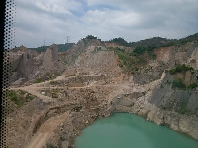 这里的几座山被挖掘到剩下半座了,人类真是无时不刻的在破坏大自然!不过第一次发现,普宁到潮汕站的途中居然还能看到这么绿的水!