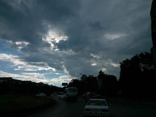 6点起床收拾后出发,下了雨,撑着伞拖着行旅箱,来到停车场,驴友帮忙把行旅箱搬上车,这时才发现玮一人淋着雨,拖着行旅箱没有伞。sorry,作为朋友很不称职,没有及早发现。一路前往昆明,遇暴雨,车子总是打滑!驴友技术不错!