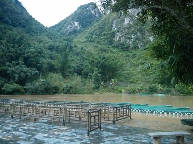到了这里,一个人也没有,船夫都不在。于是找了来之前的攻略,查了洞里客栈的电话,想试试看有没有技术好的客栈老板能撑船出来接。但是没有人敢,打了3家,只好死心了。