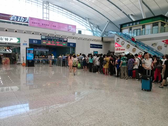 深圳买张票都要排长龙,检票口也是排长龙!9:50急着买10:05的票,看队列好长,问了几个都没人肯让我插队先买,这的人好无情,虽然有可能是来自其他地方的,但是这点确实比不上汕头,汕头人还是挺好商量的!等了很久,售票员说10:05的站票没有了,于是只好买最近一班车10:52的二等坐票了。好不容易买了10:52分的车票,还得等50分钟才可以上车,然后在潮汕站下车后,还要再等40分钟才能有大巴回家。到家都得2点半了。但好像也只能这样了。