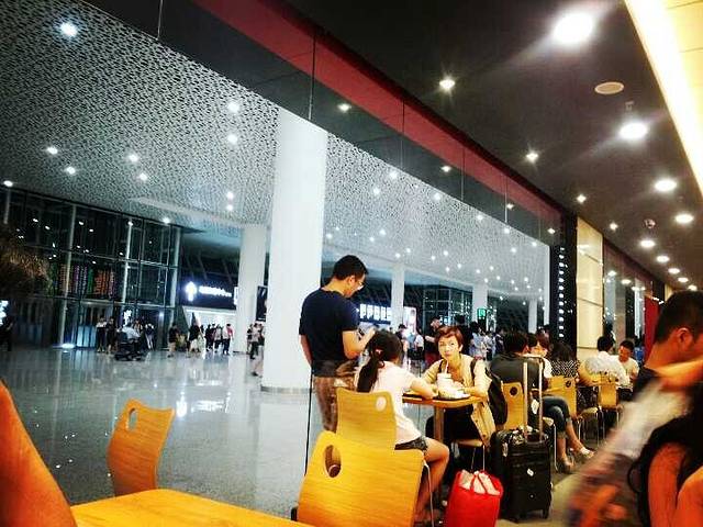 办理登机手续是在4楼,凌晨后禁止进入,凌晨到达机场的,可以到2楼的接待区休息。这里有肯德基,超市之类的!饮水机在4楼!