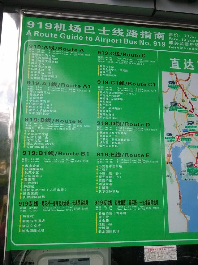 【其他】安全着落,昆明不做停留,直接坐机场巴士去火车站付大理!出发前,在网上查的是919D线,大家注意了,去后才发现是919C线才能到昆明火车站哦!