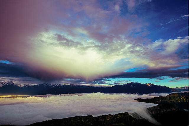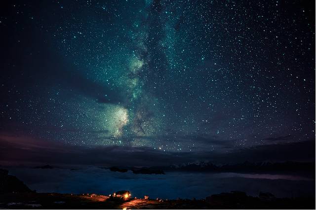 凌晨3点,在迷糊挣扎中爬出帐篷,终于如愿以偿,得到了这张星空云海与雪山的照片。