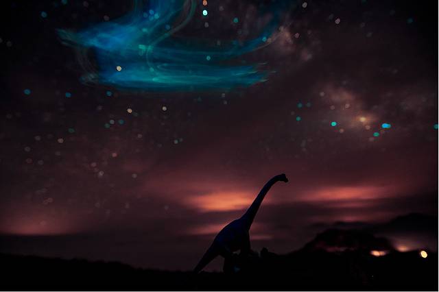 在30秒曝光结束前的几秒,一个响指,眼睛和胸口嗖嗖发光,