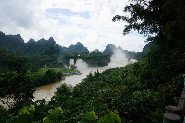 今天的水量实在太大了,不能下去游竹排亲近瀑布,好可惜!