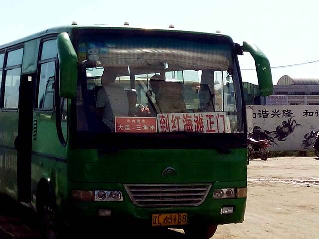 这个车就是去赵圈河红海滩景区的,每一小时开一班,票价10元/人,40分钟的车程。