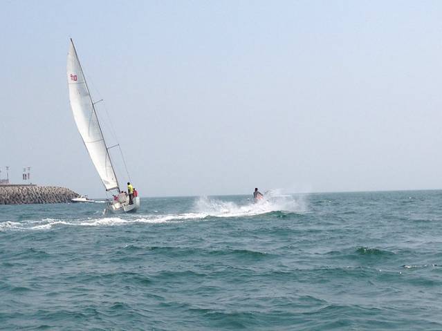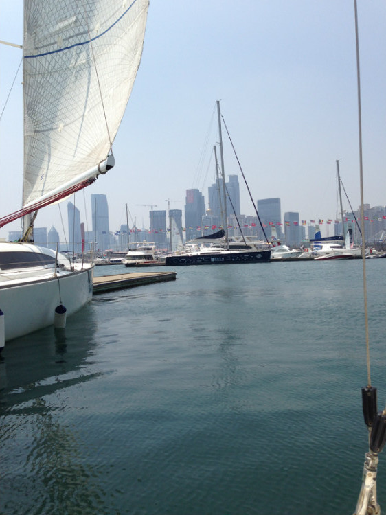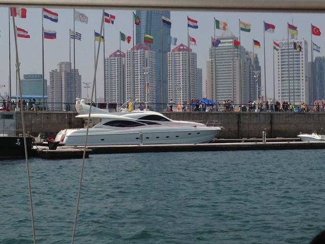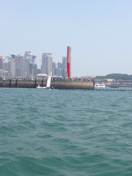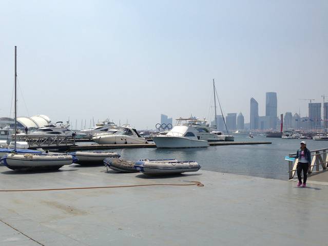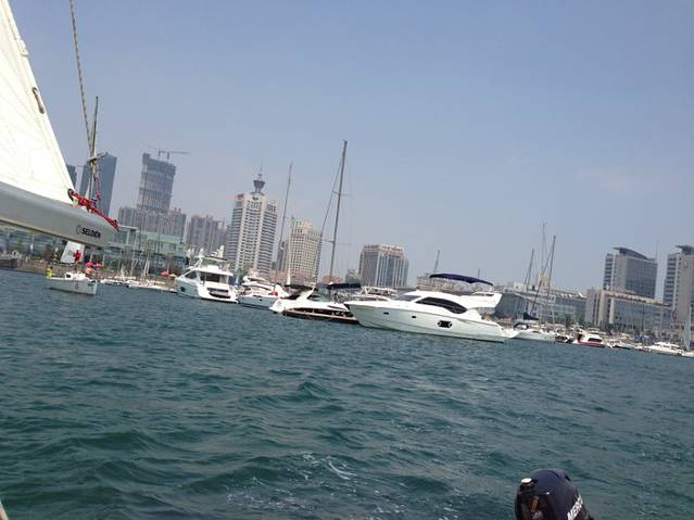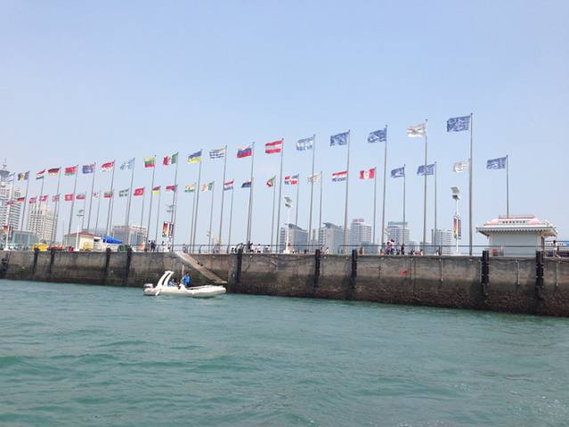 听着浪声看着帆船随着波涛起伏,很有feel。在火炬那儿可以眺望五四广场,各种帆船游艇在这儿停泊。还有各个国家的国旗。
