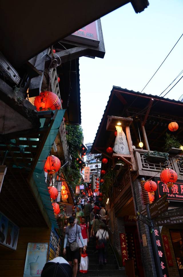 九份很漂亮很有味道,但是商铺营业时间内人很多。这天我们是下午3点多才到了,到了之后很累,所以小睡了会儿,醒来已经5点多了,由于我们第一次到九份不太了解情况,原来九份的商铺6点就会关门了,所以5点多的时候人已经不多了,这个点比较舒服,抓紧时间先把美食吃个遍,再慢慢逛精品店,到傍晚看日落照相,超赞的!晚上我们在九份住,所以有机会遇到汤婆婆哦!晚上的九份才有千与千寻的味道。第二天离开九份的时候真是超多人,九份老街本来就很窄了,又挤又热,太不舒服了,幸好昨天已经玩遍了,大家记得哦,到九份最好还是人少的时候!