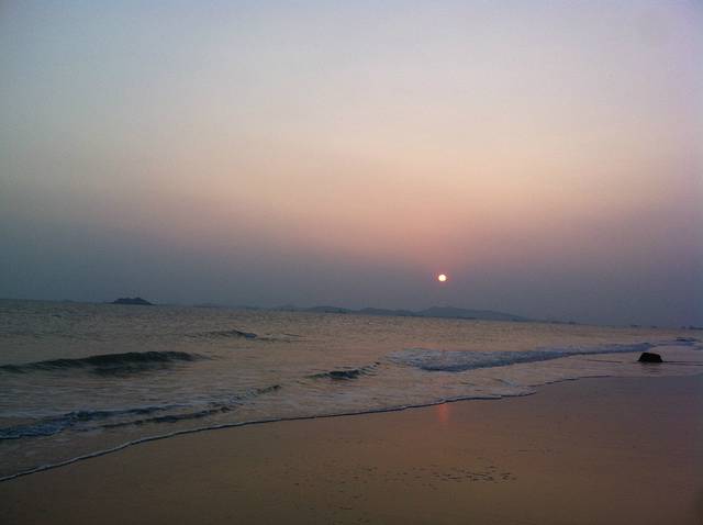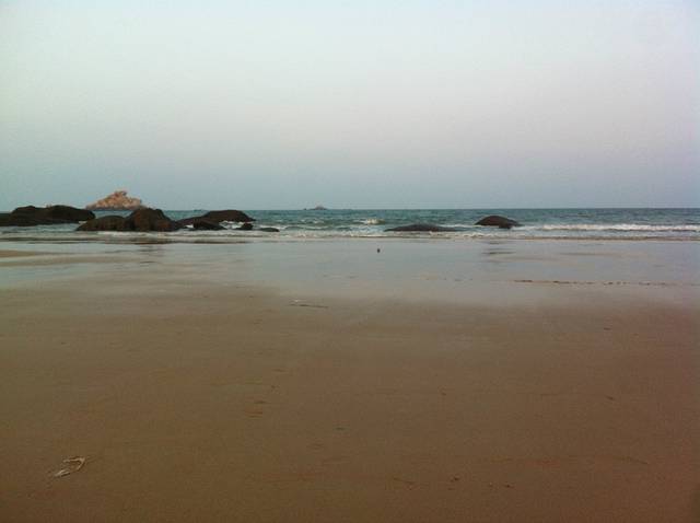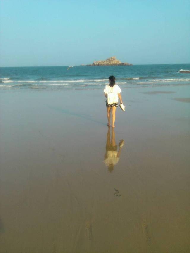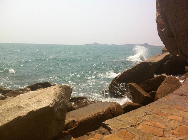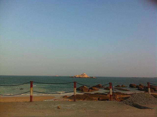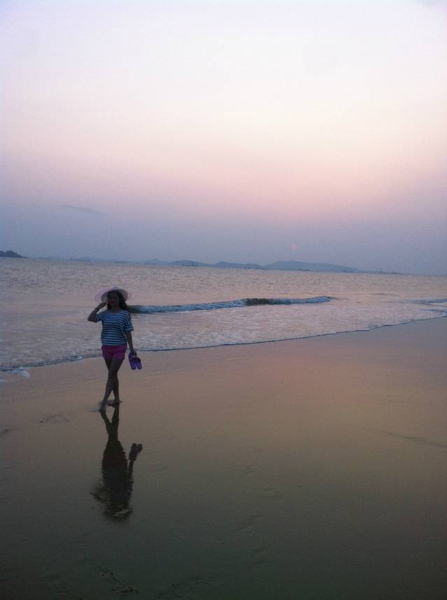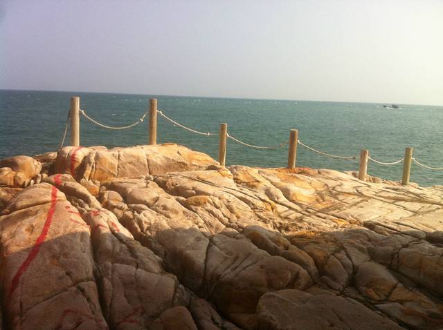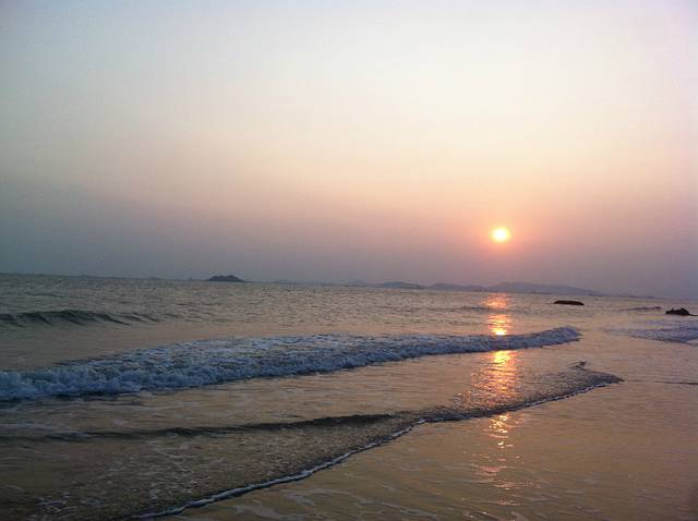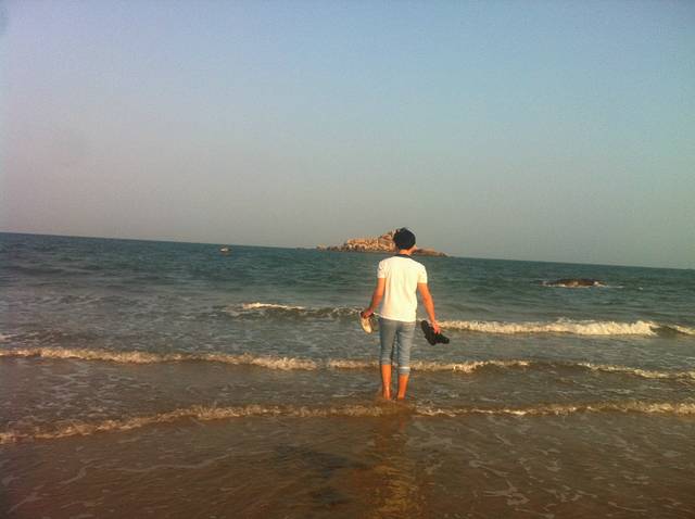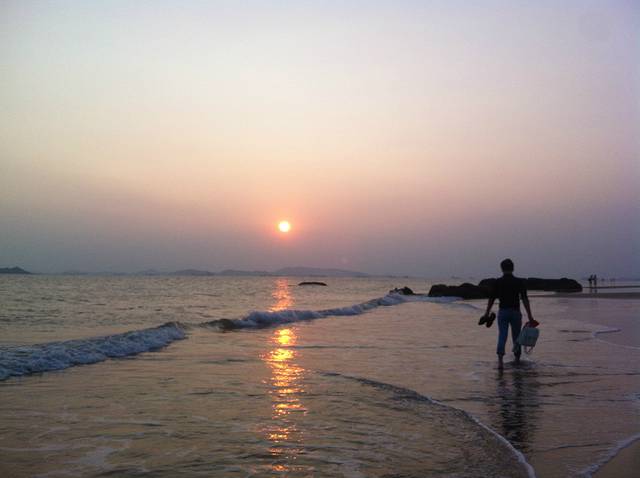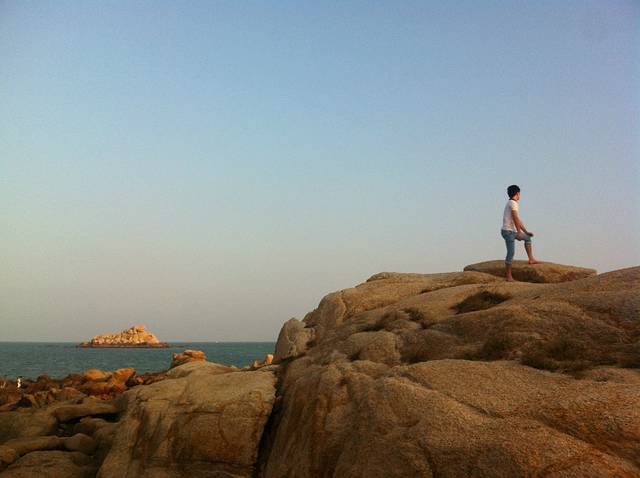 游玩过后,下来大概4点都还没到!我们又回到旅馆休息了片刻,问了老板那里有沙滩就直接去了附近的沙滩逛了逛!老板说走路10几分钟就到了,但是路在扩充,所以有些路段下不去了,我们走了半个来小时终于到达沙滩了!这里建议你们一定要穿拖鞋或者沙滩鞋!我穿的球鞋很麻烦!我们就在海边逛了一圈!攀爬石头!然后听听海浪的声音!脱鞋到海里面走走!慢慢悠悠的,累了就做在沙滩上面休息一下!时间就这样一点点的过去了!到了5点半,我们想走路到市场那边吃晚饭,但是由于不熟悉路,最总没有到,路边也没看到吃的,最后走着走着走到了天妃公园,就在那边休息了一会,实在是走的有些累了,晚上的天妃公园比较的安静 也没什么人!之后我们就去旅馆附近的餐馆简单解决了晚饭就回酒店休息了!一天的行程就这样结束了!