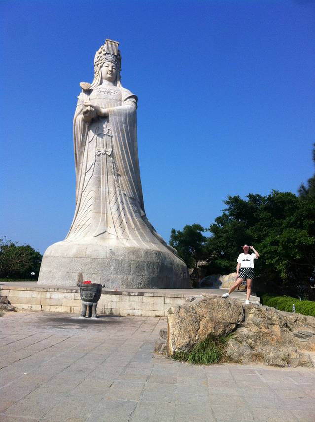 然后到房间休息片刻,2点多走路去了妈祖庙,因为就住在附近,很近,整个妈祖庙逛下来大约就1个半小时!主要游玩的乐趣是妈祖的神像!然后可以直接看到海景,非常漂亮,进入里面有一尊纯金的妈祖神像! 还有被誉为海上布达拉宫的妈祖广场!非常漂亮!