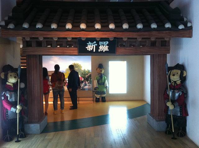 【庆州泰迪熊博物馆】早上出发,第一站庆州泰迪熊博物馆,这里不只是泰迪熊主题博物馆,而是结合泰迪熊和恐龙、海底世界、新罗时代时光之旅而成的各项展示等。我们到达场馆的时候还没有到营业时间,博物馆禹馆长接待了我们,破例我们提前进入参观,这简直就是包场的感觉,惬爽啊!进入馆内简直就是童话世界,这是妹子们的最爱,这是妹子无法抗拒的礼物~这就是韩国庆州泰迪熊博物馆,众所周知韩国的首尔和济州都有泰迪熊博物馆,但是庆州的是唯一带有主题、冒险内容的泰迪熊馆,不同时期的泰迪熊扮相都能看到。【新罗千年公园】新罗千年公园是一个兼备历史、挑战、冒险于一体的文艺体验村,并拥有千年古都、花郎道场等多种游览和体验项目。在这里,所有工作人员都身穿新罗时代的服装为游客提供服务,同时通过最尖端的技术为游客展现超大型室外演出,逼真的新罗房屋体验及武艺体验,带游客走进一个1200年前的新罗世界。这里还是热播韩剧《花样男子》和《善德女王》的拍摄地。公园里的庭院厕所很有意思,有敢用的没~哈哈~ 【佛国寺】佛国寺位于韩国庆上北道也是韩国最大的寺院,虽然战乱损毁,但经过修复后依然呈现了当年的面貌,寺内的多宝塔和释迦塔最具代表。在极乐殿门口有谁能找到小金猪代表了好运在寺内用石块堆叠起塔的造型是祈福的方式,堆越高说明离梦想越近。祝福大家!【观看FLYING演出】由于演出没有语言只是靠着肢体表演,但是演员们的精湛表演确实很精彩,看着演出再次体验一把韩国特有剧情穿越~【韩牛走起】这是今天最后一项最艰巨的任务!吃饭~当地工作人员带我们来到了一家正宗的庆州千牛店,这的牛肉可不是一般的牛肉,是韩国牛和欧洲牛的融合体,在西安我们按斤吃肉,而千牛的肉是按克卖的,一两肉40人民币,再配上朴学锡次长调制的当地人爱喝的烧麦爽爆了。当正宗的韩国冷面上桌以后,我们都傻了,碗里面全是冰碴啊~作为一个爱吃面的我,真的不会了。里面大块的冰啊~这面真的很冷。吃完晚饭大家步行回酒店,巧遇超市进去采购,当看到玲琅满目的啤酒后,大家一致认为应该在正宗的地点点份正宗的炸鸡。这一天充实啊。
