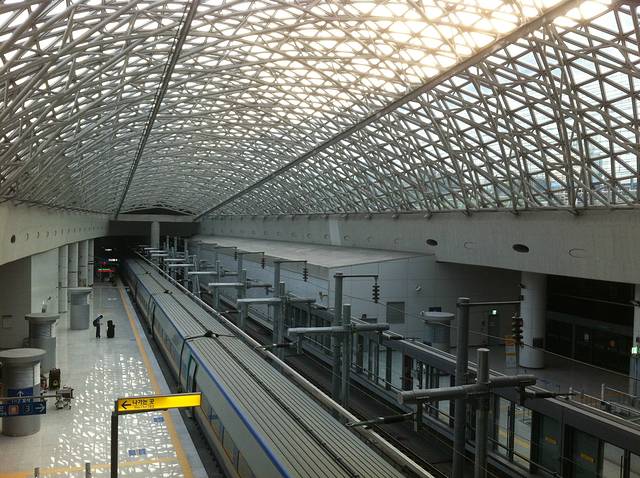 所有队员机场集合,准备出发!到韩国第一件事就是肩负兄弟们的嘱托,看看韩国的妹子是不是都像电视上一样精致时尚~我就不信韩国满街都是美女,还能有我们西安时尚潮流的小寨妹子们漂亮?中午即将乘坐大韩航空KE808(A330宽体客机)一切就绪出发啦~经过三小时的飞行到达了韩国仁川机场,出关后小伙伴们第一件事就是变土豪(兑换韩元)。未出机场所有小伙伴们就分成了三个组,大家要前往不同地点,分别去往京畿道、江原道和庆尚北道,分组行动最后在首尔会合。快来认识一下我们小组成员吧雯姐、思然、天雄、还有飞飞。让我庆幸得的是我们组里有半个韩国暖男天雄,所以注定了我们这组要更加轻松一些,只管跟着走就行了,不用担心语言问题~哈哈。我们小组是三组当中目的地最远的一个组,需要搭乘两个小时火车才能到达庆尚北道。车站和机场的接驳非常方便,我们只东拐西拐几个弯就到了~因为有天雄在所以根本没注意是怎么到的火车站~只顾着沿途眼花缭乱了。在火车上听不到大声嚷嚷、看不到上下车的拥挤,思密达的素质刚刚的。但是和我们火车上相同的是,有人小推车经过谁要“啤酒花生扑克牌”哈哈~到了饭点我们在火车上感受了不一样的盒饭,哇~这盒饭人民币是60元,内容丰富品质优良,还有个小环保袋吃完以后兜着走。一路风景一路谝很快到达庆州火车站。韩国时差比国内快一小时,到站已经是当地时间23:00,这一天都在路上啦。此时充满兴奋的跟随接我们的当地旅游局的工作人员上了车向酒店进发。夜晚的窗外黑漆漆偶尔灯光闪过,到是看到酒店让我们眼前一亮,希尔顿酒店,我和飞飞一个房间,进到房间竟然是蜜月大床房,两个老爷们相对一笑,然后就没有然后了。关灯第一天就这样在颠簸中结束了。