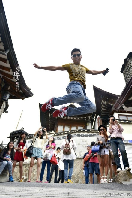北村韩屋村里有许多韩国传统房屋。“北村”是指景福宫(朝鲜时代王宫之一)和昌德宫(朝鲜时代王宫这一)之间的区域。在朝鲜时代(1392~1910),统治阶级——两班们多在这里居住,遗留下许多传统房屋。现在的北村并非是供游客观赏修建的民俗村,而是人们实际居住生活的村庄,包括11个洞900多座韩屋。领队到我们去了一个秘密制高点可以俯瞰韩屋村全貌~
