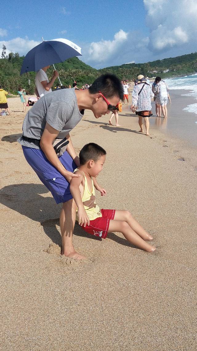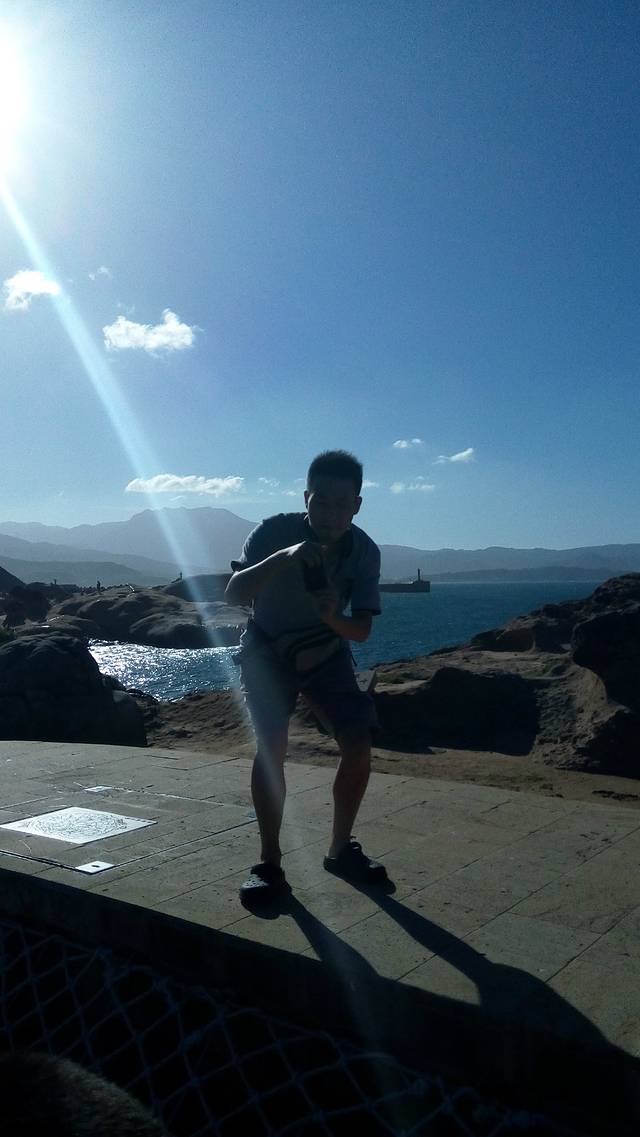 我们到达垦丁海边的时间正是午后,大太阳下面几乎站不住人,不过台风预来也有一个好处那就是有风!而且有大风!海风吹走了些暑气让我们至少能够在这台湾海峡和太平洋的分界点留张影
