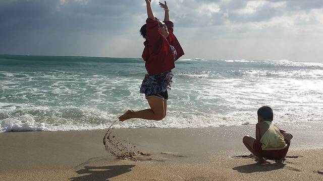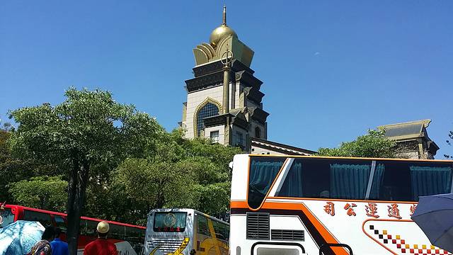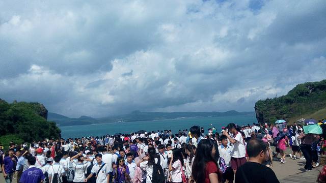 这里相当于咱们的海南岛,有很多台湾的学生团在摆造型拍照呢