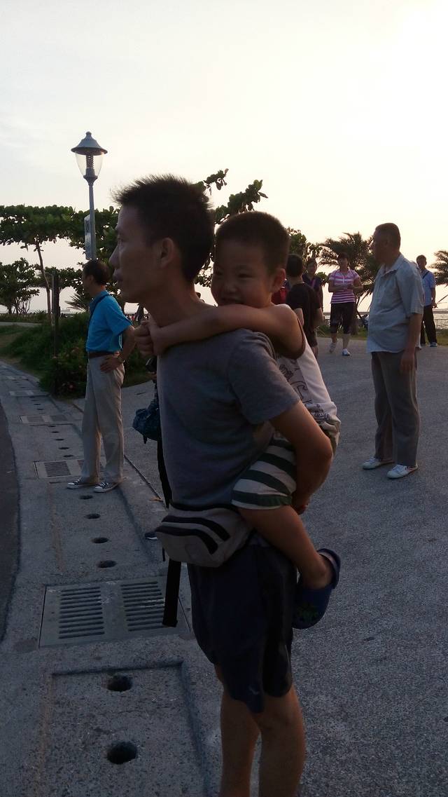 今天的行程确实太满了牛牛已经赖到爸爸背上去啦