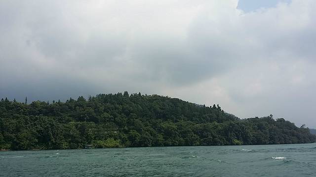与上午中台禅寺酷热的阳光普照正好相反,下午的日月潭下起了太阳雨,而且不是蒙蒙细雨呦!是顶着太阳下一阵一阵的大暴雨,不过雨中的日月潭别有一番风味