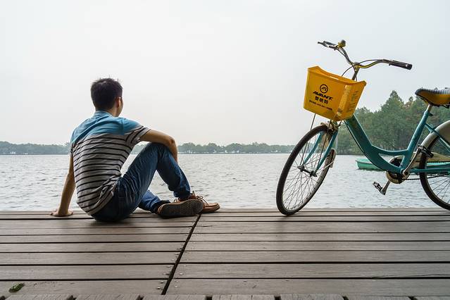 杭州的自行车道不是一般的发达。市民也很喜欢这种交通方式