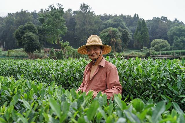 龙井茶园就在路边。我于是下车进去看看,见到这位老伯。跟他攀谈了一会,了解了一些龙井的知识。最后在我的请求下他配合的给了我一个微笑。