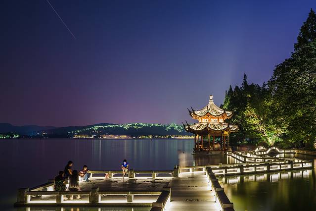 来到西湖边。看不到夕阳,略可惜。但并不影响我的心情,毕竟华灯初上西湖,也是很美的。