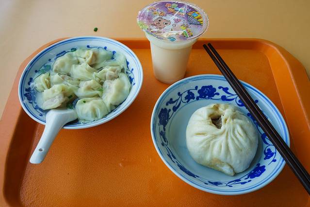 到了店里点了一份云吞,一份大包,还有一份豆浆。