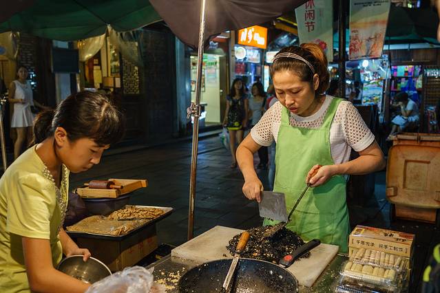 逛完西湖,听说清河坊也是杭州必去的地方。我于是踩着自行车继续。