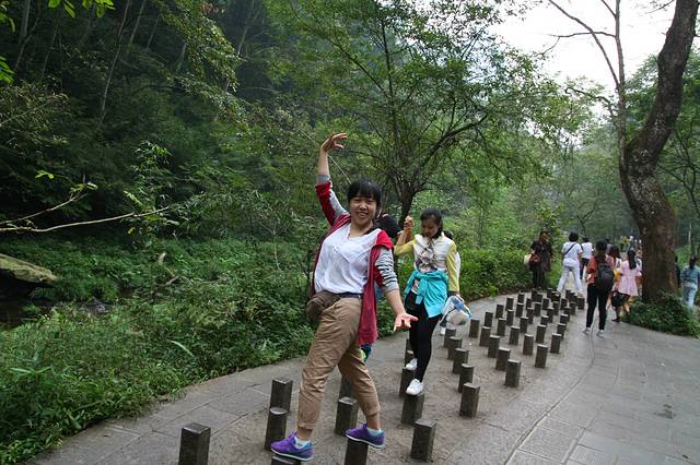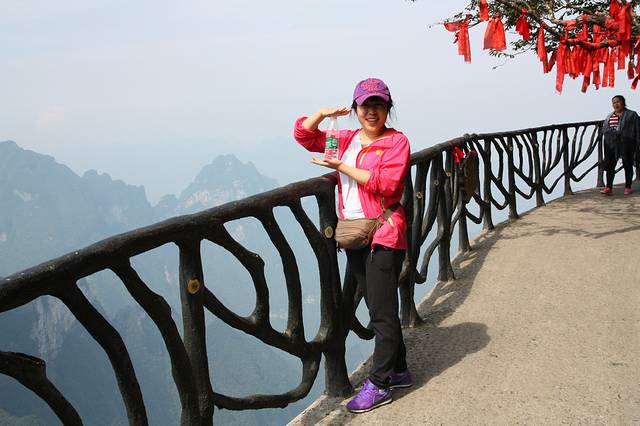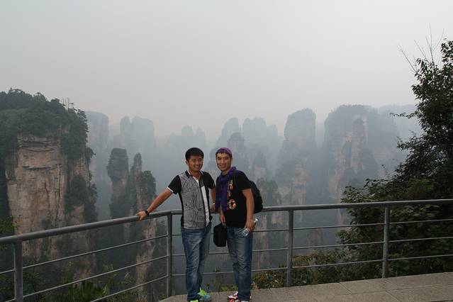 我们沿着乱窜坡到后花园,绕过了百龙电梯,72块就这么省下了,哇咔咔。之前多了很多攻略,说电梯的确很好,不到两分钟就到山顶,可是,排队等电梯也需要时间啊,更重要的是,如果们有占据一个有利地形,在电梯里除了人头,什么也看不见。综合下,我就选择爬上去,我们可爱的导游也和我们一起爬的,他的普通话不是特别标准,话不是很多,但人真的很好!