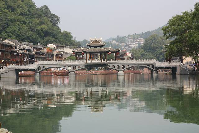 导游给我们联系了凤凰的住宿地方,可以不花门票钱进古镇,我们7.30吉首下的火车,做的客车,每人30,白天25.天下凤凰下车,打车打表的话5元起价费就够了,可是,他们都不打表~凤凰和其他古镇一样,已经很商业话了,看点有两个,意识夜景,灯光映在沱江上,很好看,很可惜没去酒吧清吧之类;另一个看点四清晨。一切刚刚复苏。我们起床晚,没看到。。。