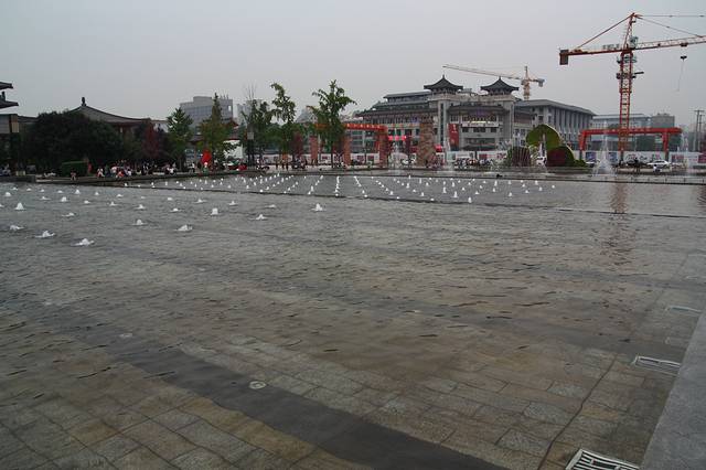 之前查的大雁塔音乐喷泉为亚洲最大,所以一定要去看看,去的太早了,在附近的一个小吃城福客福厨(网上查的,味道还可以,也不太贵)把晚饭解决了,喷泉时间21:30.我们还是太早,就在周围转转。这是天黑之前的喷泉