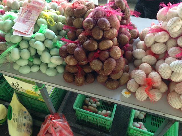 河蟹哪里都有卖,不建议在那边买,还没进入景区呢,满马路两边就都是了,大米也都有,我是买了很多野鸭蛋与大雁蛋.还有蒲笋,就是都上了舌尖上的中国的盘锦特产.野鸭蛋在红海滩风景区门口的市场,15元一网兜,估计买多还可以讲价,大雁蛋是20元一网兜,我都是各买10袋是这个价.