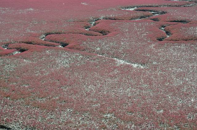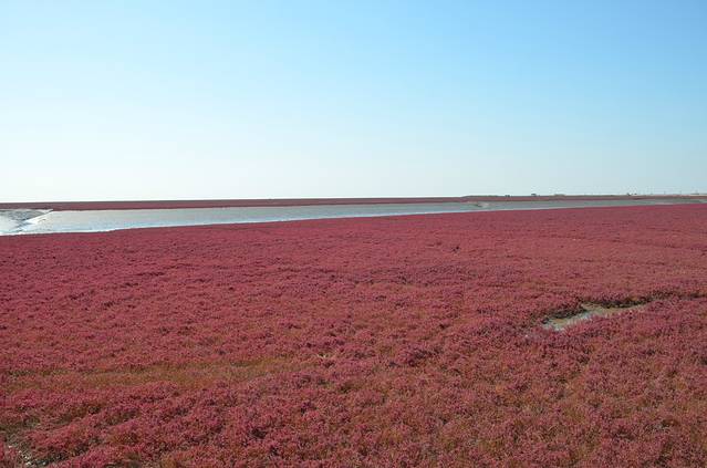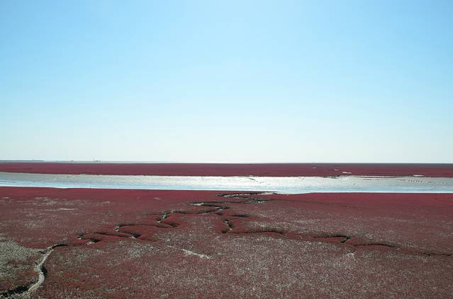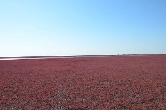 我先开车去的风景廊道,景色当真是壮观.人还非常少,随便停车,走走停停,那叫一个惬意.风景廊道还新增加了乘坐直升飞机空中看红海滩项目,收费是750元每人,两个就可以升空.风景廊道能看到大海,是渤海辽东湾,风景廊道里面的特产卖的很贵,想买东西,可以去4A景区的红海滩门外的市场购买.可以讲价.从风景廊道出来不远处,就拐到4A景区红海难的入口,就得停好车,进入园区,买船票与电动车票.在一望无际的芦苇里面行船,看着狭窄水道在船只经过后起的浪惊动起群群水鸟,非常舒心.不虚此行.盘锦红海滩号称丹顶鹤的故乡,大雁等水禽多种多样.玩够了,去大洼县城里面的兴隆紫澜门温泉度假村吃的晚饭,酒足饭饱之后,回沈阳!非常开心!