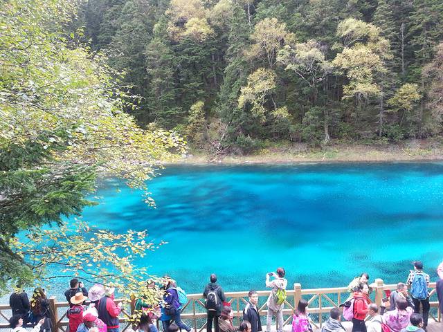 早上7点出发,步行去九寨沟风景区,同样导游给了票,自行游玩。中午不管饭,自行准备。景区内有大巴车,每一站都可以下车游览。虽然是十一节前去的,也是人山人海。我和老公基本每一处景点都去了。因为人太多,没有留下经典的照片,有点遗憾~但是这里的风景真是无语伦比,去的时候有点下雨,雾蒙蒙的如仙境一般,美的让人想哭。晚上参加了藏区的篝火晚会,欣赏了藏族人民的表演,9点多结束了一天的活动。
