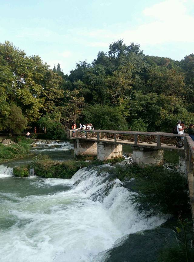 第二天一下火车,我们坐上去花溪的公交车,大约四十分钟后到了花溪公园,一路问路直奔花溪牛肉粉总店吃早饭,那个人多啊,看起来都是外地人来吃,其实不太推荐,在一条很乱的步行街里,对面就是飞碗,环境差,服务不好,好多人都站着吃。还不如我后来吃的黔味黔,环境好,服务好,干净。 早饭之后去附近的一条小巷子里找到了去天河潭的小巴,仍然需要排队,也没人一起拼车,我们选择了坐面包车过去,一客十块,走高速,二十分钟就到了。换好门票,继续排队等观光车,没人维持秩序,乱。终于进入景区……