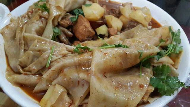 大盘鸡配面皮,脸盆一样大