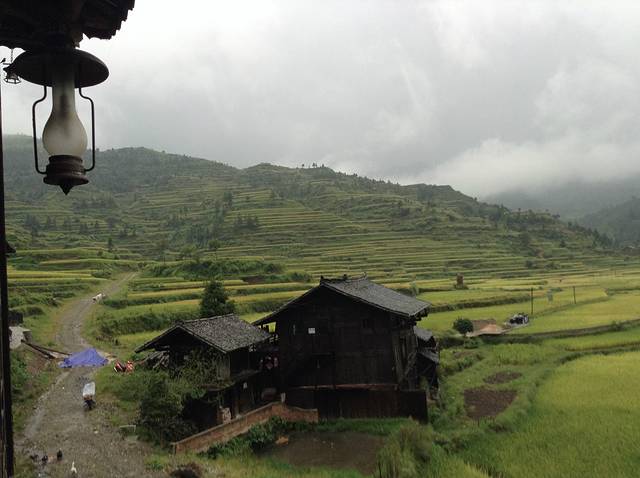 早上8点50的火车从贵阳到凯里,11点到凯里,出火车站做1路公交车(1元),到洗马河站下(注意哦,1路有凯里客运这个站的,但是走的路比洗马河下要远),买了11点40的汽车票(15.5)1个小时后,我们就到达了西江。 西江的门票是100元,但是必须加买20的电动车票,不买不出票,据说可以向旅游局投诉啦,这个我们也是后来才知道的。 西江我们住【西江源远牧歌农家】就在风雨桥边上,离主街有点路,但推开窗门看到的就是梯田,超美。晚上上了景观台,看全景,说实话,有点小失望,还是早上比较好看。