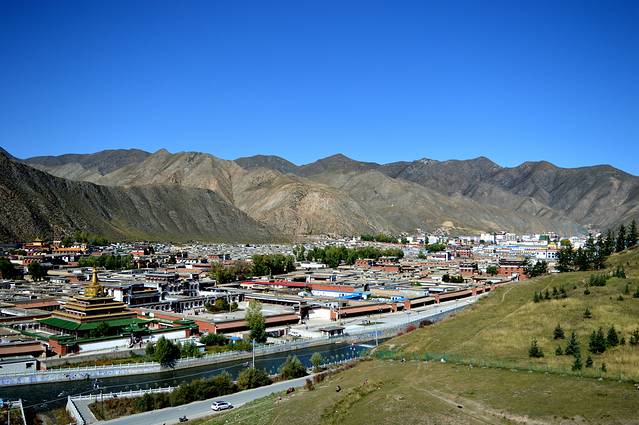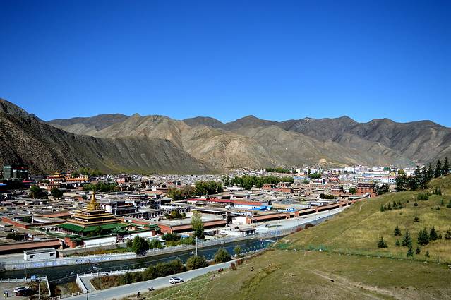 拉扑楞寺和桑科都位于夏河县。夏河县地处甘肃省西南部、甘南藏族自治州西北部,海拔在2200----3600米之间。晚上睡觉的时候有个别同志有轻微的高反,所以对高度比较敏感的同志建议要提前准备药品。从兰州到夏河县是230公里,但是由于高速限速80公里,且好长一段都没有高速,因此我们走了4个小时,于中午12:00到达县城,县城中心和景点非常近,因此我们选择在县城中心吃午饭,地点是万福川菜火锅,在地图上都找得到,在人民东街街心花园旁,但是难吃,不建议去。人均30元。