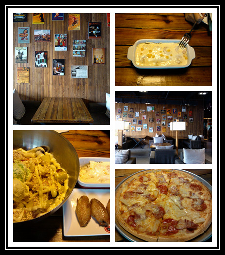 地方果然没有选错,一个非常怀旧风格的披萨店,店面的布局是木质的桌子和墙壁,屋顶是黑色的铁质结构,松软的沙发,墙壁上挂满了上个世纪50-80年代的图片,什么好莱坞的明星照啊,西部牛仔啊,摩托车,酒瓶等等。我们点了12寸的披萨,格里克鸡翅,鲜虾薯泥以及冰淇淋沙拉。酒水各自点各自的,人均60元。席间为我们的女主角突然呈上生日礼物,搞得女主角嗔目结舌,甚是动容,一顿愉快的生日午餐就这样开始了•••••