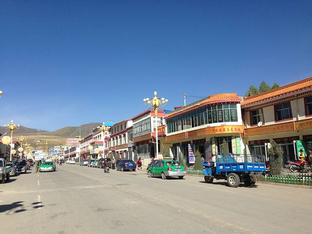 大约10点钟,我们到了碌曲县城,这个县城很小,但是干净整洁,商铺都是整齐地排列在道路两旁,马路一看就是经过修正的,非常不错。中饭就在县城随便找了一家天津灌汤包子铺,其实就是小笼包子,配上豆浆和稀饭,味道还不错哦。