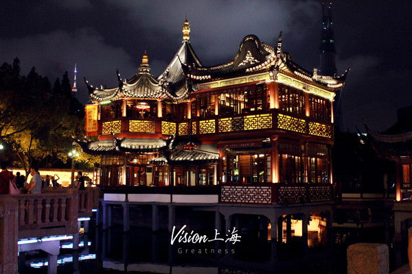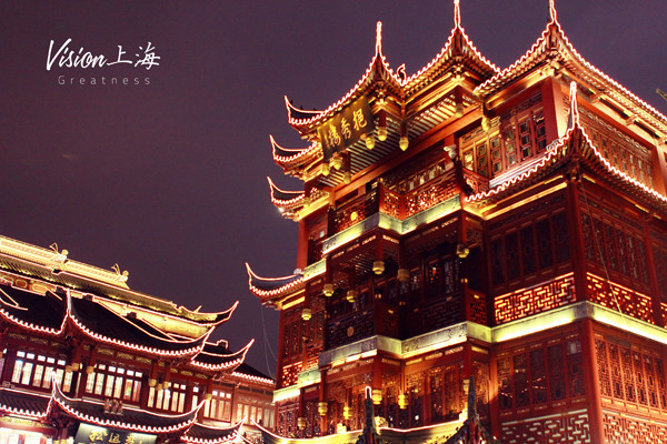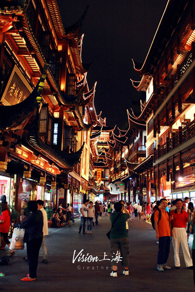 城隍庙的人没有想象中的多,地方也没有想象中的有古旧感,倒是装满彩灯的仿古建筑在晚上奕奕放光芒,乍一看恍惚来到倭国。