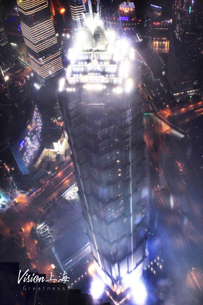 再一个是因为,金茂可能对它的高度充满怨念,于是就在楼顶上装了好多好多好亮好亮的灯,7:30一过,灯一开,明晃晃的亮瞎你的眼啊,拍什么都过曝或欠曝。
