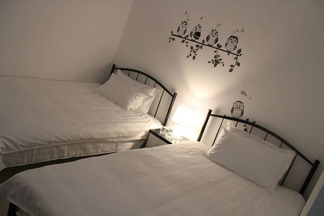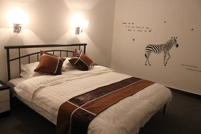 最后一天,没有房间了,老板给我们升级了个大床房,哇喔,好爽!