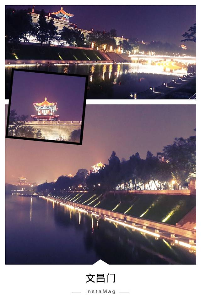 为了满足她逛街的要求,给她找了个离钟楼近的地方,出门就是文昌门和护城河,夜景真是美包包!