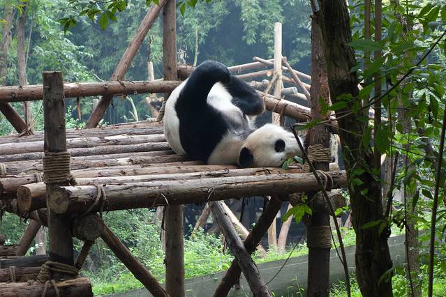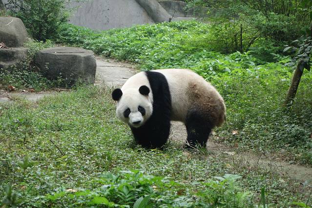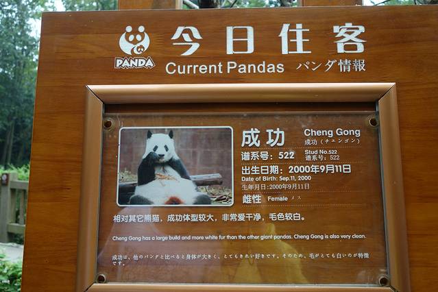 超级喜欢熊猫,这里的熊猫还是很多的,各个年龄阶段的都有。在太阳产房看到了才刚出生没多久的熊猫宝宝,超级可爱啊,趴在哪里就只是在睡觉,好小的一只。还有1,2岁的熊猫,跟在妈妈身边各种玩儿打滚什么的太萌了。还看到了几只4岁的熊猫围坐在一起吃竹笋,感觉像是熊猫开会,哈哈,超级可爱的。再大一些的熊猫就只能分开养了,放在一起会打架的,好多都是在睡觉,有一只超级好玩儿,挂在树杈中间睡觉去了,真会享受啊。还有散养的小熊猫,他们可以再园区里自由活动的,正好有一只就从我前面的步道上横穿过去到另一边的树林里去了,尾巴上一环一环的很漂亮。还有介绍熊猫各种常识的纪录片可以看,拍的很好,中英文轮流播放,可以看到熊猫宝宝出生时的记录,有的熊猫妈妈超级有爱的把小宝宝叼起来放到怀里抱着,就像人类抱着宝宝的姿势一样。还有老年熊猫的熊猫馆,基本上都是在睡觉呢。想和熊猫近距离接触,可以像熊猫基地捐款2000元,然后就可以学习当熊猫保育员,参与给熊猫做食物,可以摸到国宝哦,喂它吃东西什么的,还有工作人员帮忙拍照片,另外还送光盘,熊猫玩偶,还有捐款的证书什么的,也算是给保护熊猫事业做贡献了,不过2000不便宜,国宝的身价那是相当的高啊