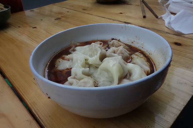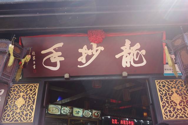 龙抄手是一家老字号店,已经有七十多年的历史了,在里面点了一些小吃,有的确实很辣,hold不住。 味道都还蛮不错的,就是鸡丝拌面,吃到后来略辣啊!(原谅我们不能吃辣的人啊!!)