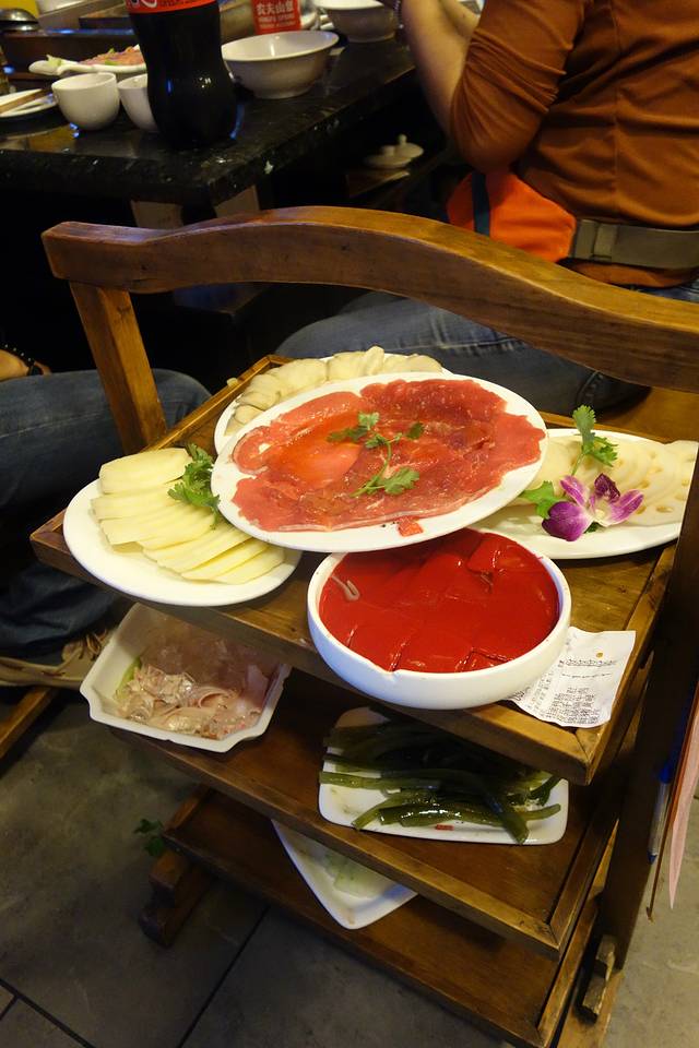 论味道对于食客几乎没有什么可挑剔的,不光是锅底料足味浓,各种涮菜也是品种丰富,那鸭肠鹅肠光颜色就和在昆明吃到的不同,好坏凭眼睛就能分出来。