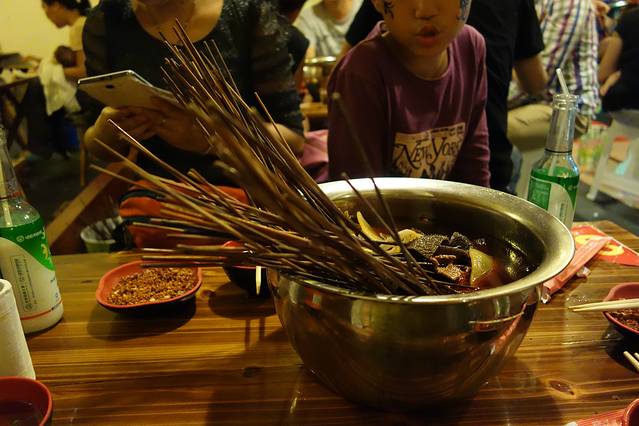 价比高的一家串串,环境很差,地面很油,一定要小心跌倒。后面的小院全是桌子,可见他家的生意是多么好。无锅底费,是老油。味道好,推荐