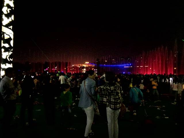 白天的时候等待喷泉表演,说明一下,工作人员一直在说不要上台阶,工作人员一走,大家又都上去了,为了自己的安全为了大家都能看到,所以还是要遵守秩序的
