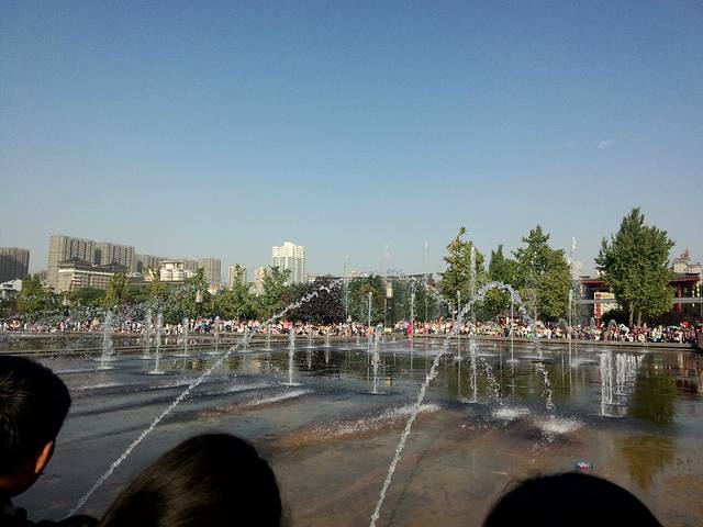 下午入住后去了大雁塔,运气很好,刚到的时候北广场音乐喷泉开始,人很多,位置也不好,加上是白天,所以决定先去大雁塔,大雁塔在大慈恩寺里需要单买门票,大慈恩寺学生票30,大雁塔15,大雁塔下三层有舍利经书类的展区,上面就是爬楼梯,且人超级多,排队一个接一个的走上去,有点坑吧。之后在外面做了一会找吃饭的地方,其实旁边就是美食城但是我们走了岔路,直接去了大唐不夜城那边,没有什么想吃的,但是实在太饿找到了超市下面的美式快餐,一份烤肉饭,一杯酸梅汤,一份煎饺子,还有一份凉皮,一共28,很便宜,也很实惠,两个人吃的很饱,回来之后到了大雁塔旁转一转,回来排队看喷泉,本以为8点开始,结果7点多进去排队,结果被告知是9点,但只要出去了肯定就进不来好位置了,决定等,只能站着,连蹲一下都不能,但是最后并没有那么激动,如果有机会大家可以来天津外滩公园的喷泉看看,我觉得更美一些。